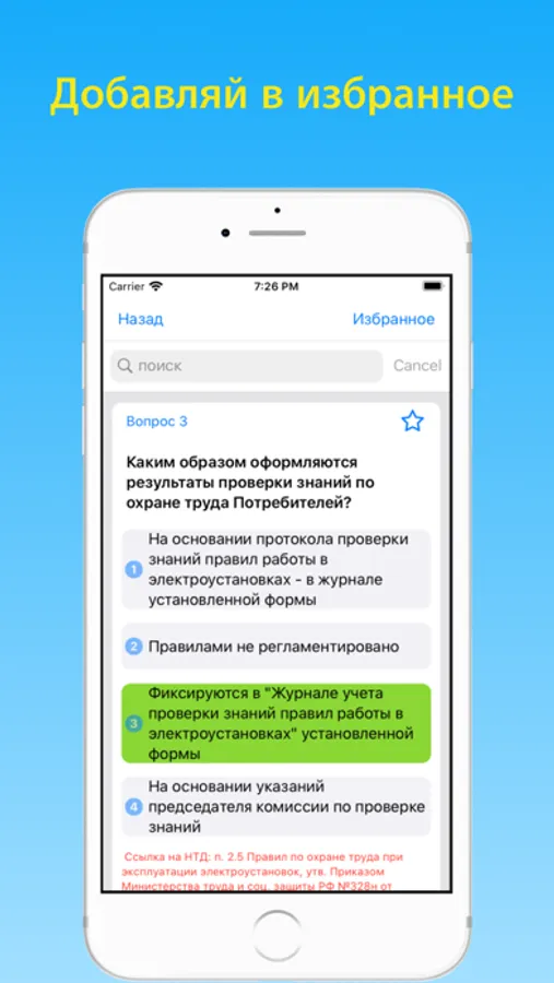 • Работа над ошибками - в режимах "Экзамен", "Марафон" и "Тренировка в избранном" Вы можете сделать работу над ошибками.