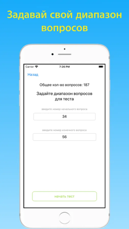 • Марафон - Предлагается ответить на все вопросы с возможностью выбора вопросов или же все вопросы, без ограничения по времени и ошибкам;