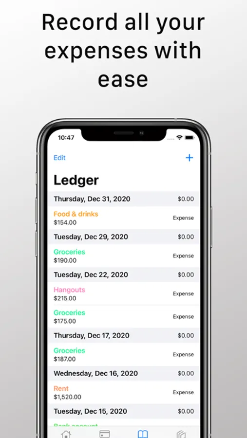 Pro Ledger will give you insights and trends on your financials, and keep track of your expenses.