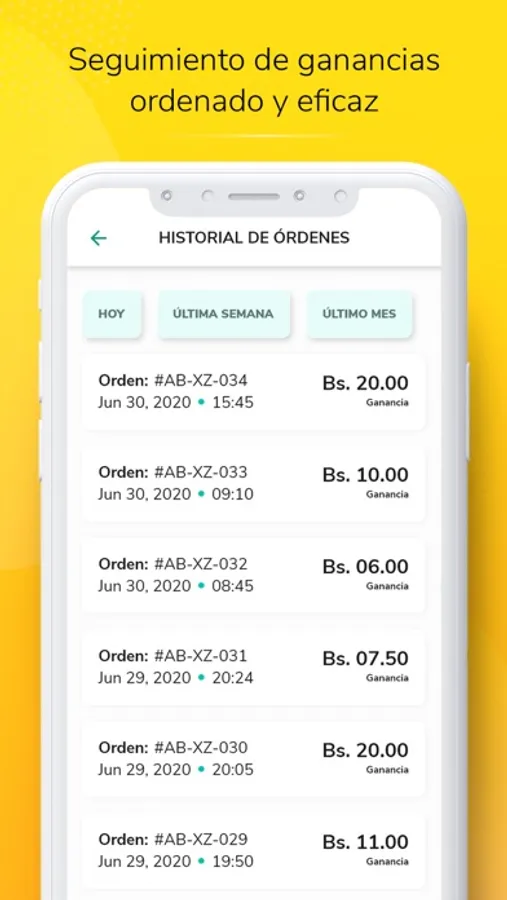 La aplicación te dará detalles de ganancias en cada orden así siempre estás bien informado. Adicionalmente, tus entregas estarán siempre detalladas en un reporte para que puedas tener un control de tus ganancias en todo momento.