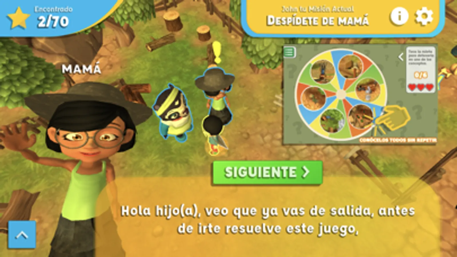 Vivirán varías misiones que le ayudarán a interiorizar los elementos de la competencia de autocuidado. Entre las misiones se encuentra, el análisis de imágenes, sopa de letras, rompecabezas, entre otros que no sólo contribuyen a las competencias de gestión del riesgo, sino también de comprensión lectora y de tecnologías de la información.