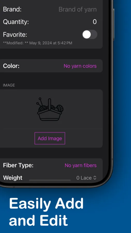 Yarn Inventory Management: Easily catalog and organize your yarn stash with detailed information including brand, color, weight, and quantity. Never lose track of your precious yarn again!