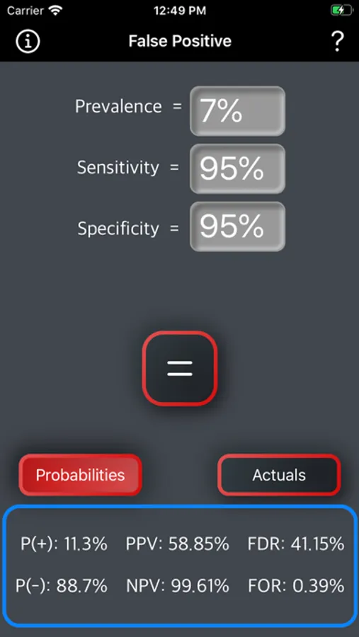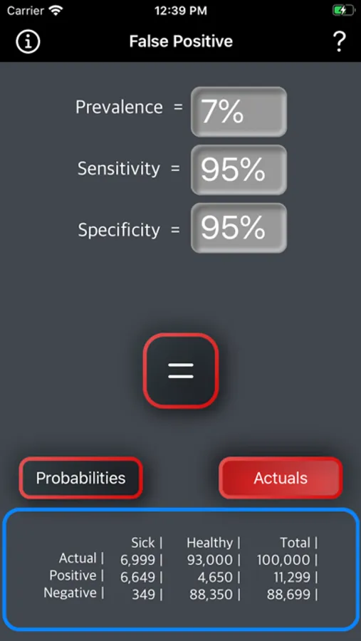 What do Sensitivity and Specificity mean? How likely is a false positive? Often times the terms and percentages associated with medical testing can be confusing. This simple calculator helps you better understand the associated statistics and how to interpret them.