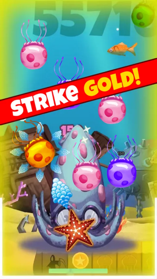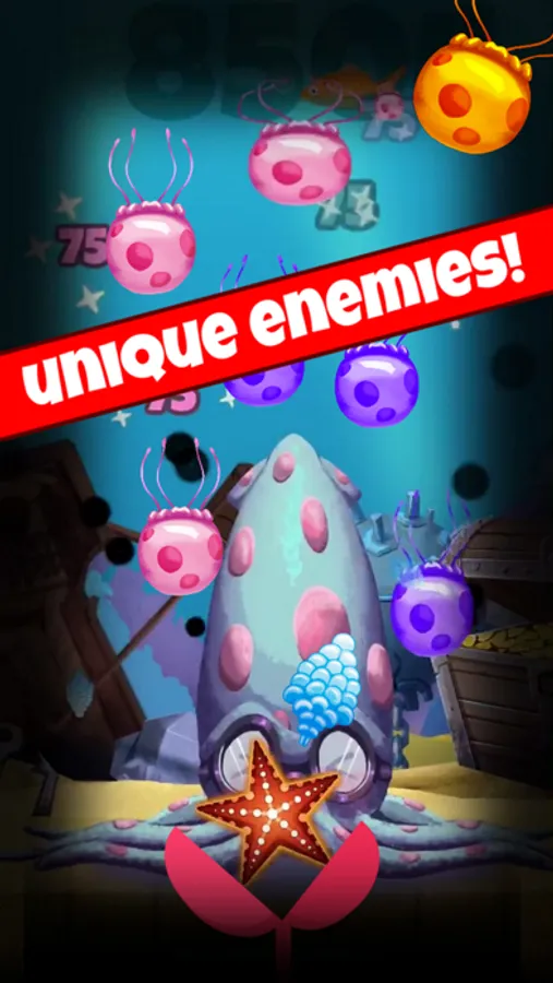 2) UNLOCK SKINS by progressing through levels and shooting the rare, GOLDEN jellyfish for coins!
