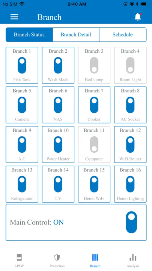 User can define the operation of each of the branch independently. Give individual priority for each branch according to use’s application requirement. Each branch can be set for timing control according to application needs. Use can remote control each branch and ON/OFF it directly.