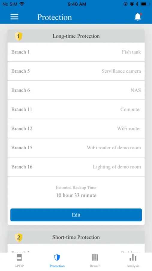 i-PDP adopt IoT technology for data communication, storage, analysis. User can monitor, setup and control i-PDP by APP through smartphone. i-PDP detects the parameters of utility, each output branches, power consumption, battery and environment and manage the i-PDP power system smartly.