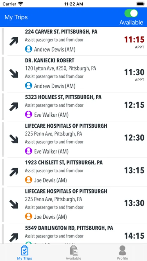 WellTrans Mobile, a demand response mobile data terminal (MDT), used by the contracted and credentialed transportation provider network, allows Drivers to see previous, current, and future trips in real-time. WellTrans Mobile allows WellTrans to better handle same-day bookings, improve on-time performance, and increase passenger trips per hour the increased efficiency.
