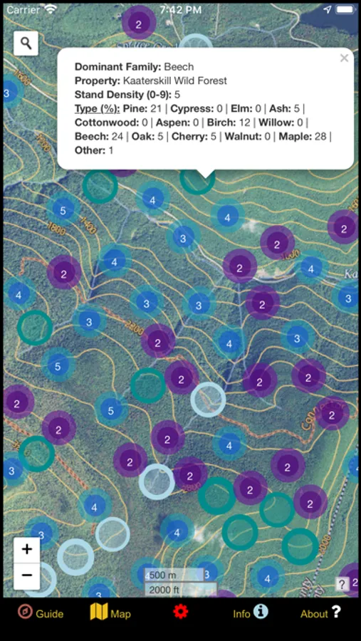 You can manually toggle given tree species on or off if you're an arborist specifically interested in forestry rather than mushrooms. This app is a great way to discover old forest stands or to learn how to identify certain types of trees by look. If you are interested in finding birch bark, oak acorns, apple trees, sugar maples, walnuts, or hickory nuts, just turn on a given layer and eliminate the guessing and frustration! Need some pine needles and cones for an art project? Pick from thousands of woodland patches laden with beds of them!