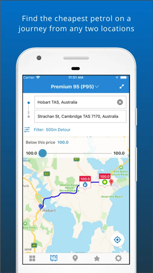 You can personalise the app by adding your favourite stations and addresses. Set up alerts for your favourite station or when price drops under a certain threshold.