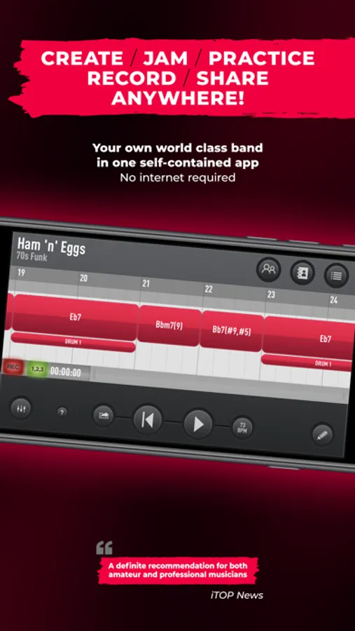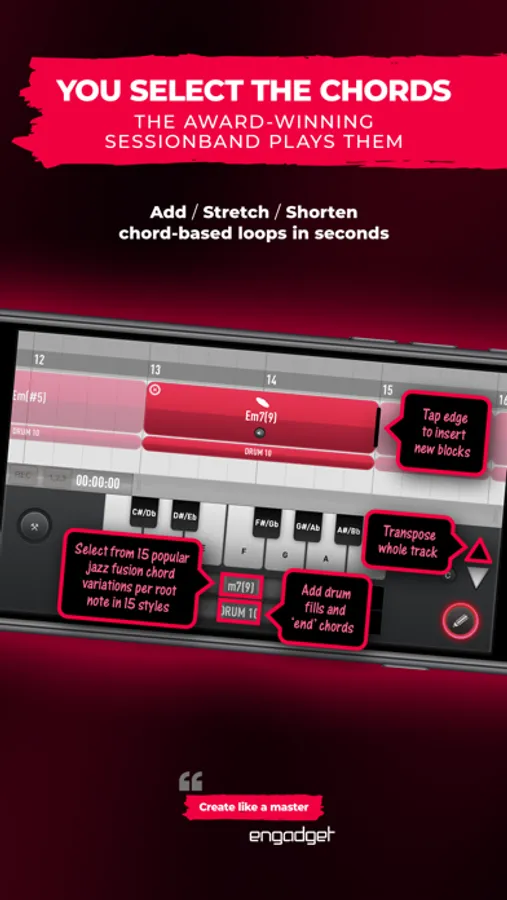 Create studio-quality Jazz Fusion tracks to your own chords in minutes with this special artist edition of the award-winning SessionBand app - the world’s only chord-based loop app.