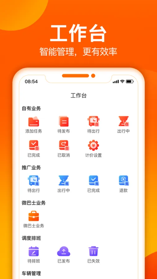 同系列产品包括【微巴士司机端】【微巴士APP】【微巴士校园端】,致力于全场景用车服务。