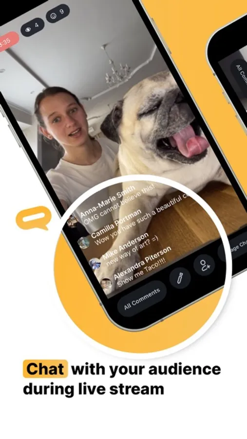 Enable comments on the screen to engage with your audience in real-time. All the comments viewers leave during the stream appear in both your and your guest's mobile studios after you go live.
