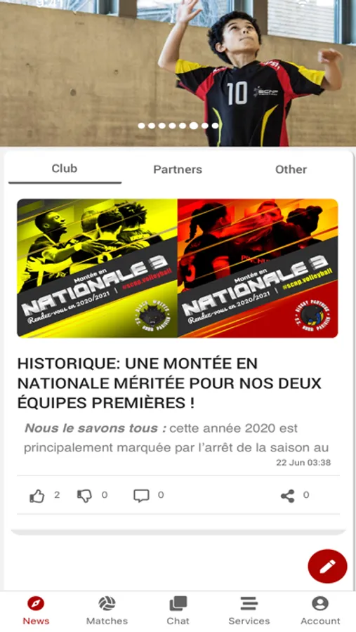 This application developped by Intraclub aims to connect all members of Sporting Club Nord Parisien, a french volleyball club, and potentially non-members wishing to follow the news and activities of the club as a whole and to discuss with them. The app also provides users with access to great deals, promotions and other services linked with the club's activities.