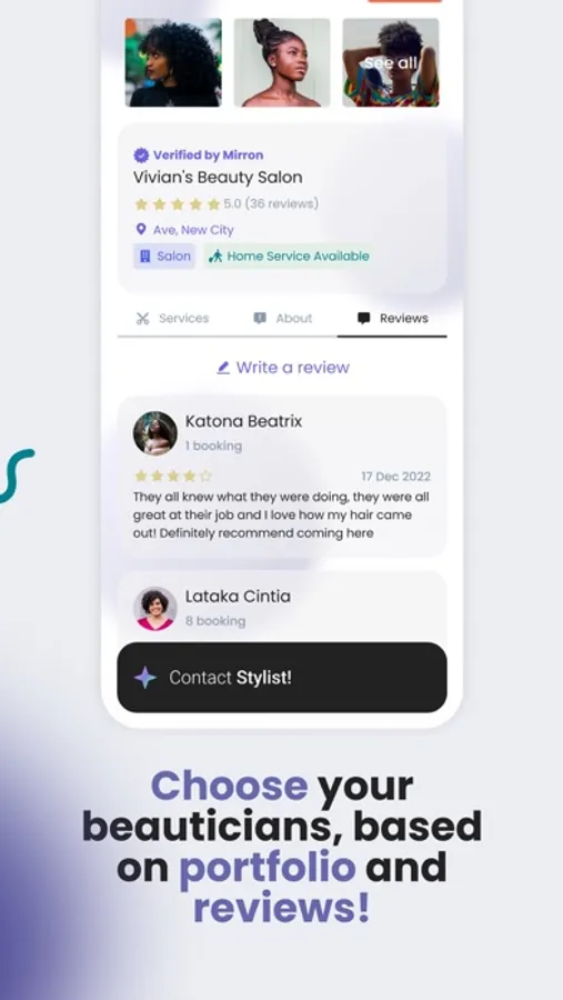 Looking for high-quality and skilled stylists and beauticians in your area? Look no further than Mirron! With our user-friendly app, you can easily find and book salon appointments with professionals who are conveniently located near you.