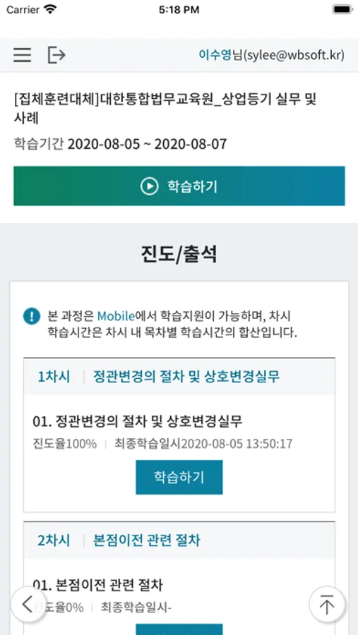 - 정규화 과정 및 한입크기 과정을 모바일에서 수강하고, 수강이력을 관리하는 기능 제공