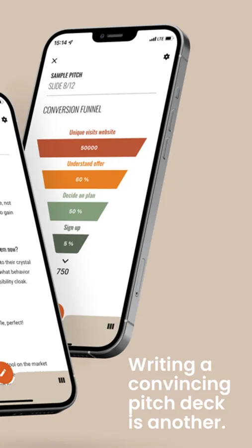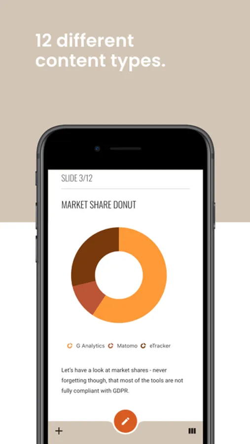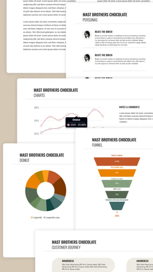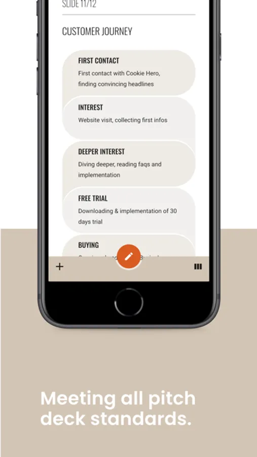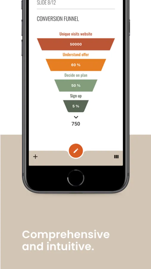 Our app is comprehensive & intuitive. It guides you through the process of creating your convincing presentation - and in the end, generates a perfect PDF, ready to be presented.