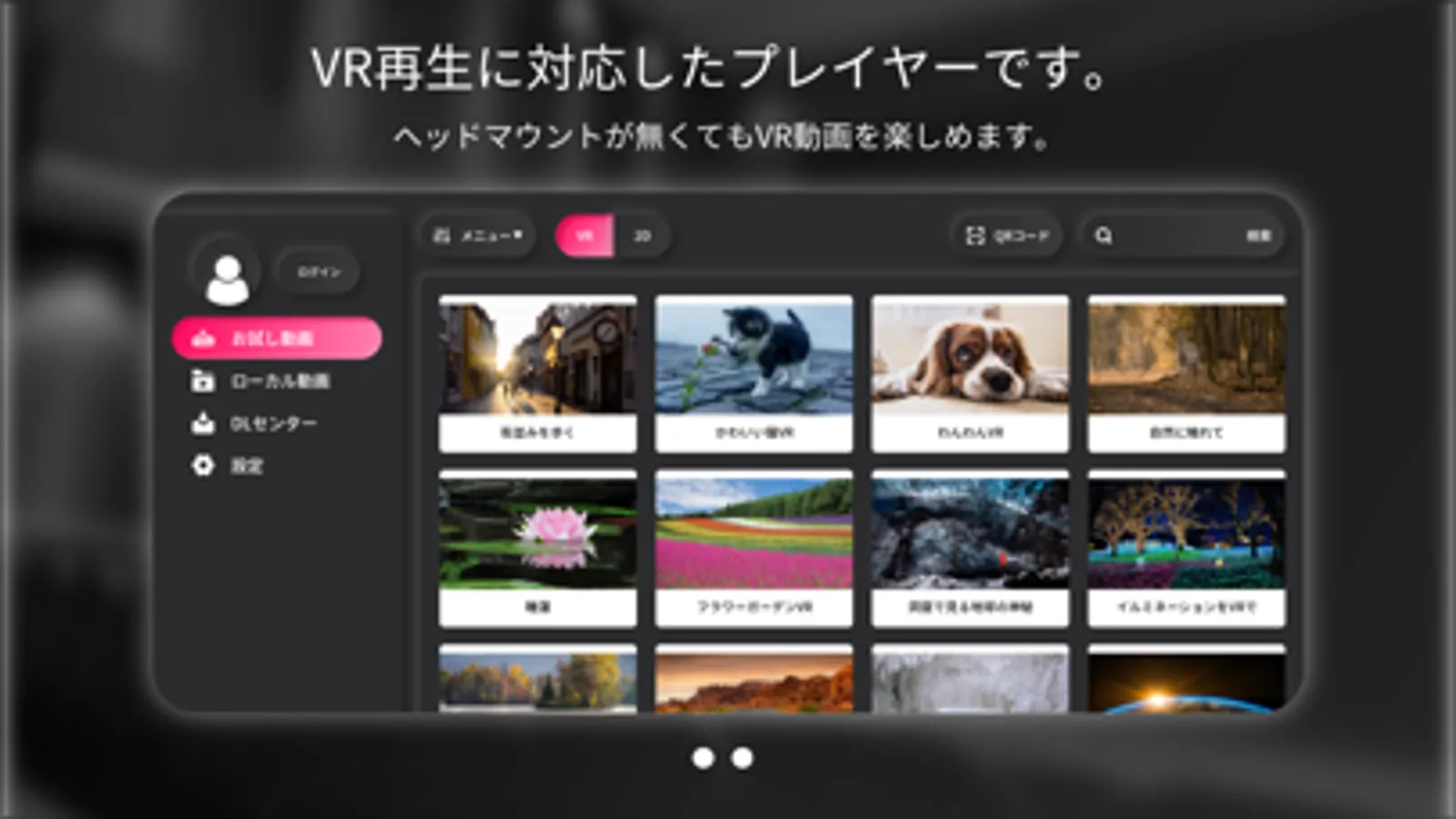 A video offers two playback options, VR and 2D! In VR mode, you can control the player just by tilting your head. It is as easy as that!