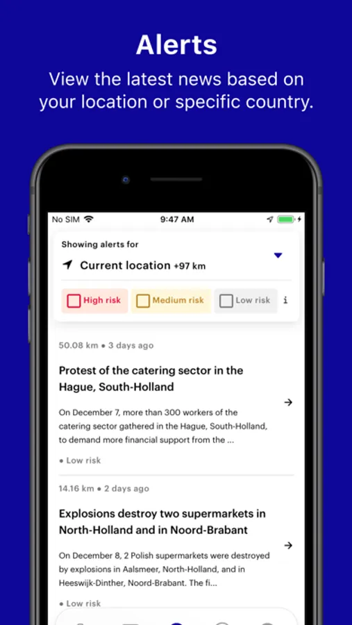 The Hienfeld Travel Assistance App is your travel safety assistant. The App offers you up-to-date travel information and advice and real-time warnings about risks in your vicinity and around your stay or worldwide.