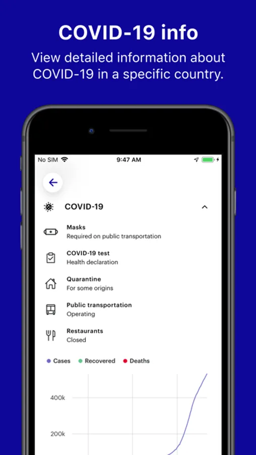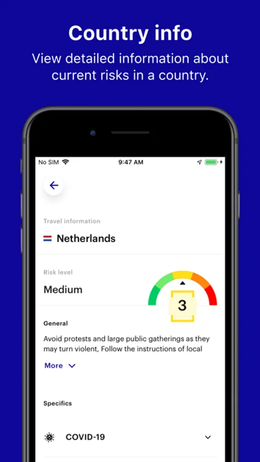 Prior to your trip, the App provides travel advice and country tags for comprehensive travel