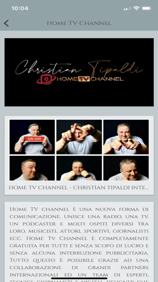 HomeTV Channel è una nuova forma di comunicazione, unisce una radio, una tv, un podcaster e molti ospiti diversi tra loro, musicisti, attori, sportivi, giornalisti ecc. HomeTv Channel è completamente gratuita,senza scopo di lucro e senza alcuna interruzione pubblicitaria. Tutto questo è possibile grazie ad una collaborazione di grandi partners internazionali ed un team di esperti, tecnici, giornalisti e digital designer che hanno abbracciato il progetto e aiutato praticamente alla nascita e realizzazione di questa nuova forma comunicativa apolitica e libera da ogni major e politiche aziendali del settore. Nel pieno rispetto delle vigenti norme legali, Home TV Channel è un progetto digitale completamente innovativo ed unico nel suo genere.