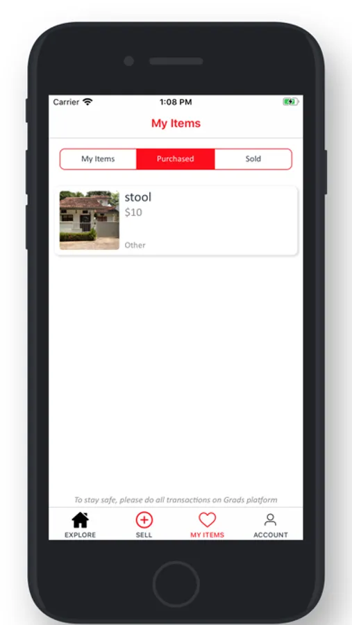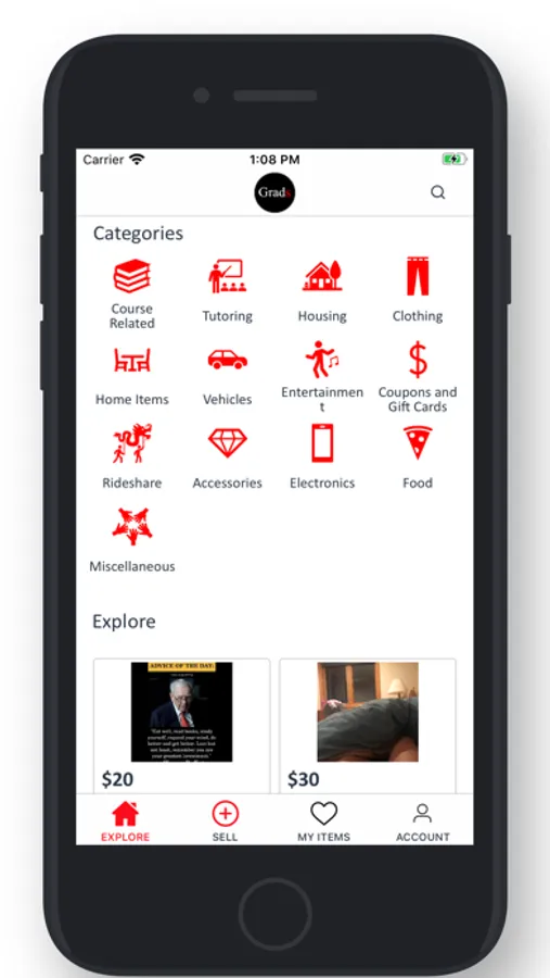 Grads app is a secure marketplace exclusively designed for students. Following features are available: