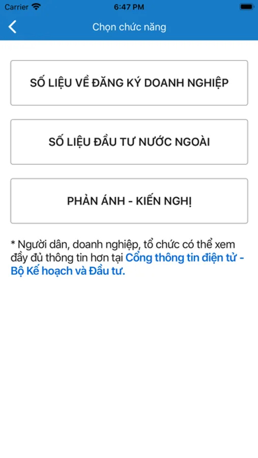 This application give the annoucement about the planning, development investment information, news and statistics to Vietnamese people, domestic and fogrein businesses.