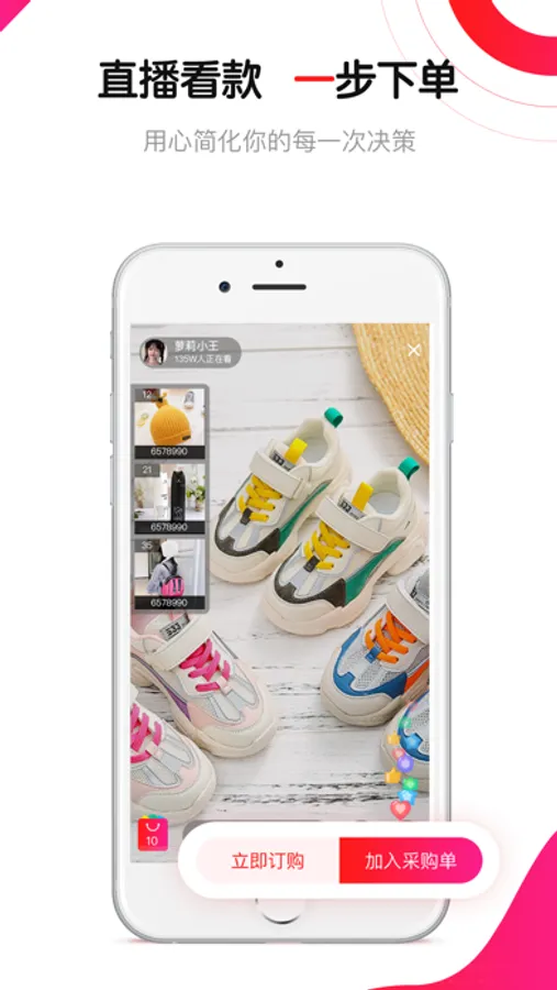 2、直播看款:简化你的每一次操作,一步即可下单。