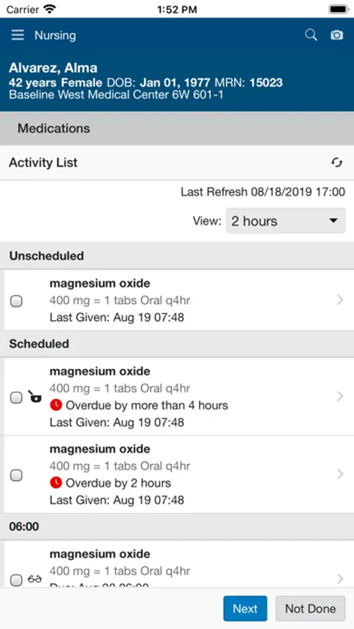 • View and administer a patient's active pending medication, intermittent, immunization, and continuous activities using barcode technology to verify the ‘Five Rights’ of medication safety.