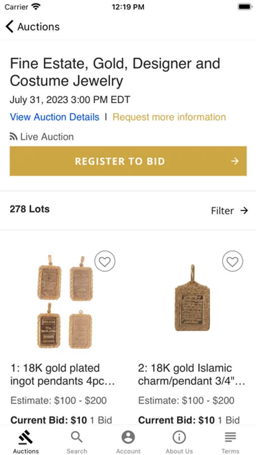 - Receive reminders to ensure you never miss a chance to bid in a sale