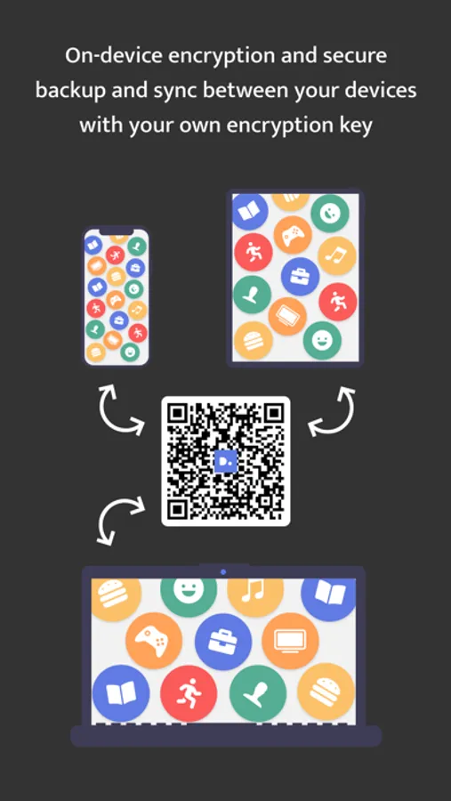 -On-device encryption and secure backup and sync between your devices with your own encryption key and dropbox account