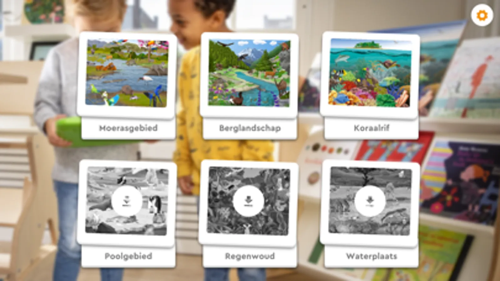This Augmented Reality app comes with puzzles of different landscapes: ‘Watering place’, ‘Coral sea’, ‘Rain forest’, Pole area’s, ‘Wetlands’ and ‘Mountains’.