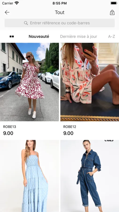 Miss Carla est un outil de visualisation et de commande en ligne destiné à nos clients professionnels de la mode. Leurs clients peuvent demander une autorisation d'accès dans l’application. Après la validation de la demande, ils auront accès à tous les articles et pourront passer commande à distance.