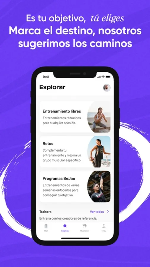 En BeJao encontrarás el plan de entreno adecuado a tus objetivos particulares y podrás combinar tu plan de entreno basado en objetivos de pérdida de peso, musculación o tonificación con entrenos enfocados en pequeños objetivos particulares como fortalecer las abs, glúteos, ganar velocidad, ...
