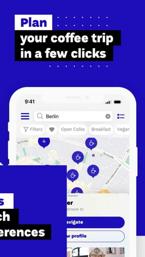 Our database is stored offline, on your phone, so you can browse and navigate even without the Internet. We regularly review and update cafe profiles with new photos, opening hours and offerings. You can quickly check if the cafe is open or not!