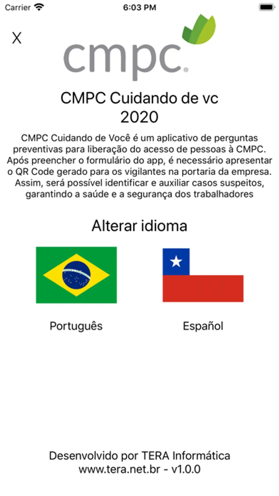 CMPC Cuidando de Você é um aplicativo de perguntas preventivas quanto à para liberação do acesso de pessoas à CMPC. Após preencher o formulário do app, é necessário apresentar o QR Code gerado para os vigilantes na portaria da empresa. Assim, será possível identificar e auxiliar casos suspeitos, garantindo a saúde e a segurança dos trabalhadores.