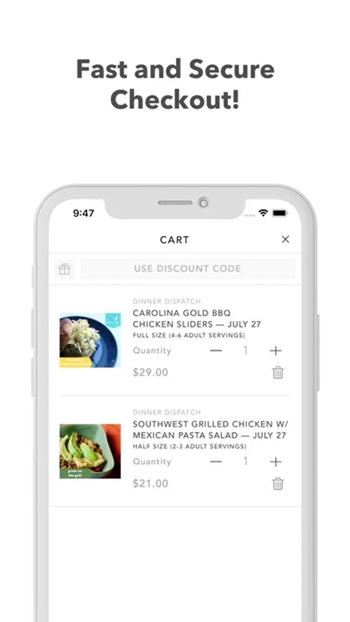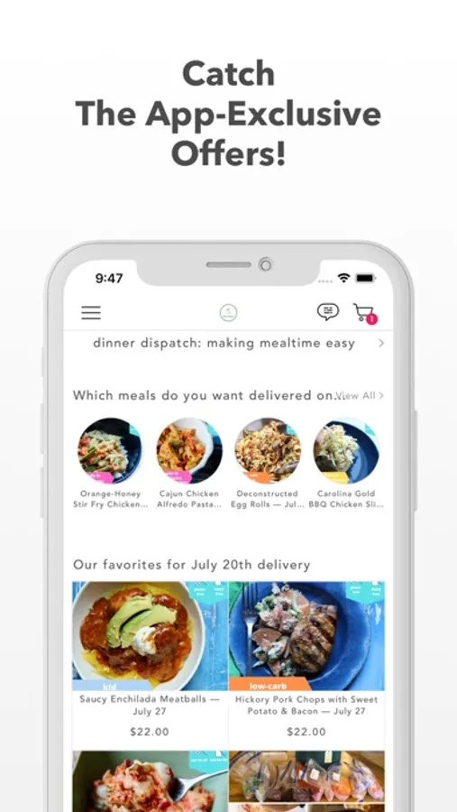 Our app lets you pick your meals for the week and schedule your delivery, and will include reminders that your meals are on the way. You can also chat with us directly within the app — it's our primary way to communicate with our customers. Be sure to enable notifications so you have the most current information about your meals.