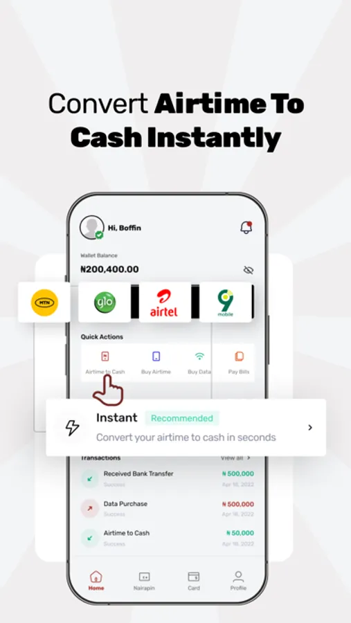 With Aimtoget’s innovative structure, you can convert your Airtime to Cash and get your funds in your wallet in less than 2 seconds and in your Bank account in a minute.