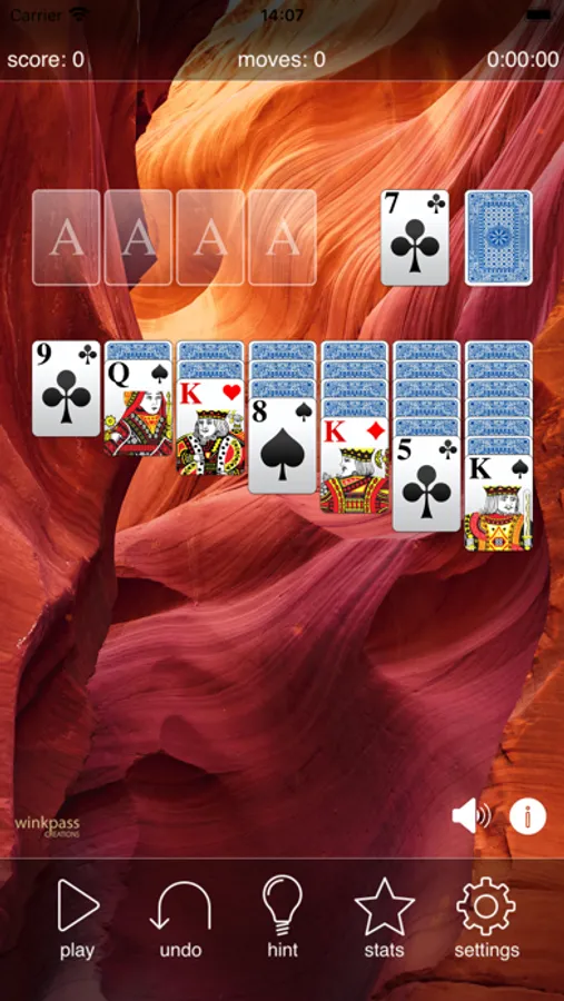 Klondike Solitaire by Winkpass Creations. Enjoy this classic version of Solitaire that we all love! Addictive and relaxing, this version of Solitaire will mesmerize you with soothing dynamic backgrounds while stimulating and challenging your mind.