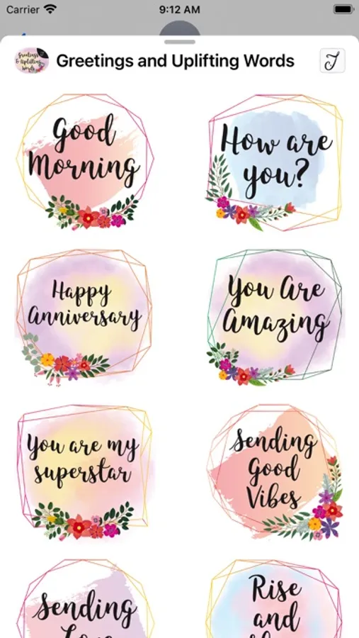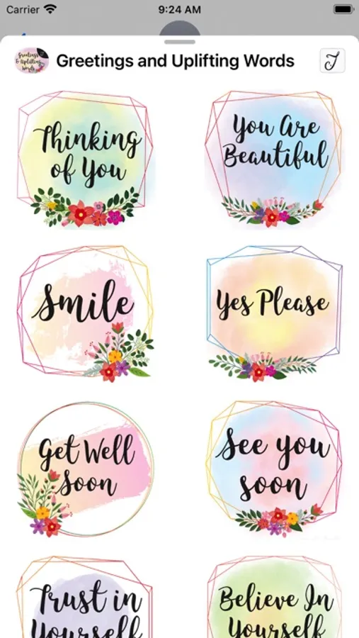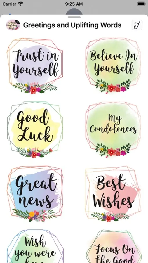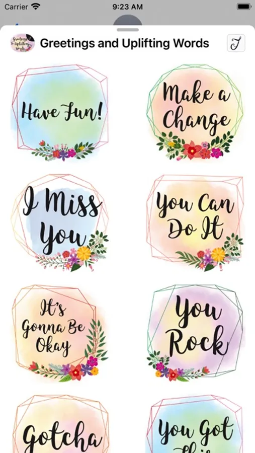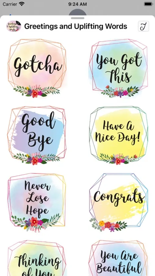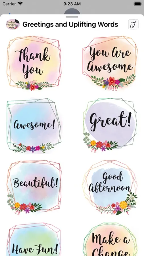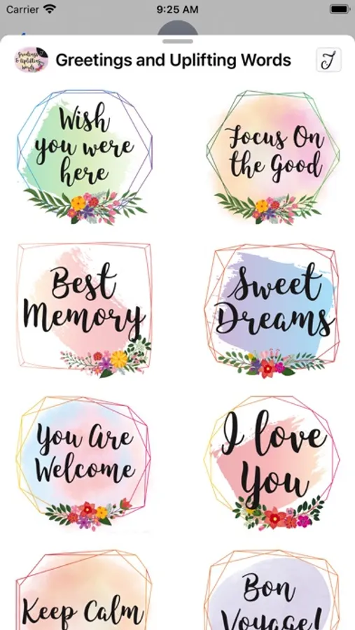 Make your text message more personal today, add those crafty feeling to the technology you are using with this iMessage Stickers pack that comes with beautiful and colourful watercolor paint background, combine with modern frames and flowers with a total of 69 stickers. This stickers pack comes with the commonly used daily phrases, from greetings to love messages, to short motivational, inspirational and encouraging notes. Chat with your friends and family with this big collection of phrases. They are easy to use, just drag and drop; when you are busy or in a hurry and your friends, family members or partner need your comfort, simply scroll through the options and send a quick heartwarming short message, wish them good, it will mean a world to them. Right communication is the best way to build a relationship, friendship, bonding and all that, why not start with something small and beautiful to start the conversation. Have fun with these colourful artistic words text messages, use them daily!