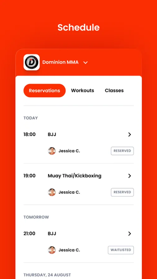 For members of Dominion MMA to reserve their place in a class, sign up for gym events, and general account management like updating headshots and credit card on file.