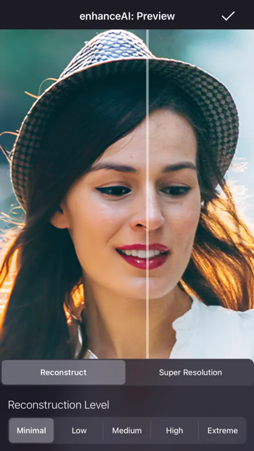 Our Reconstruction mode destroys part of the image and rebuilds it using our neural network trained from millions of examples of high-quality photos.