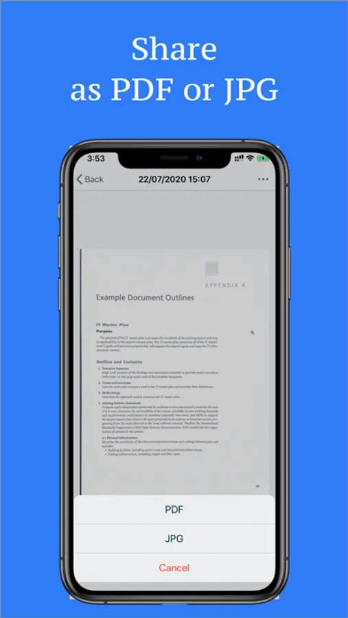 Once you complete your scan and editing, you can share it as PDFs or JPGs.