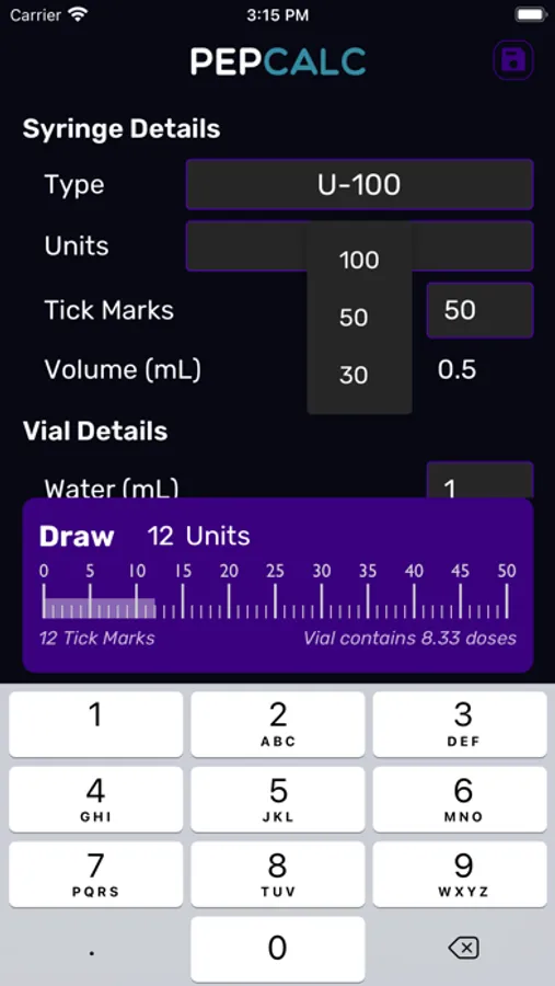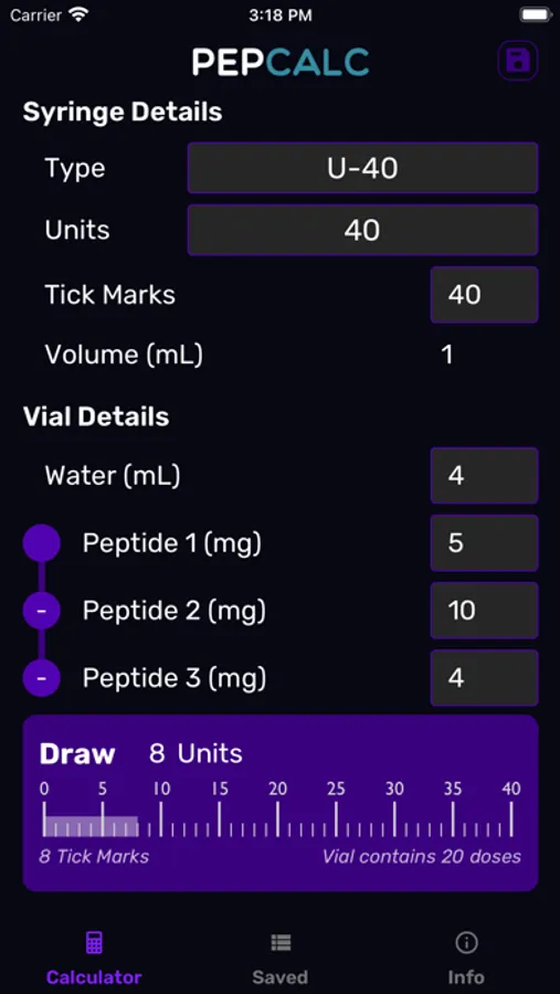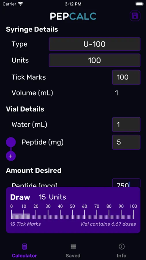 PepCalc is an easy to use reconstitution calculator for computing amounts of powders in each unit or tick mark after reconstitution.
