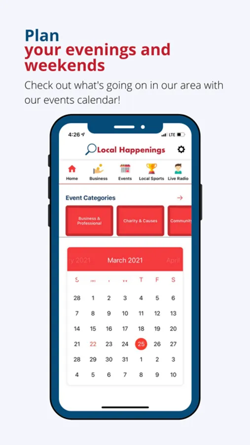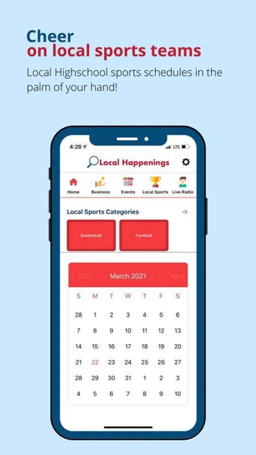 Local Happenings allows for anyone to easily find, share, and participate in local, community based events. Whether someone wants to find the date and location of their child's basketball game or maybe the location and cost of a local band playing on a Saturday evening, Local Happenings is the place to look. Local Happenings allows everyday people to connect to their community even stronger than before by providing a platform for them to find information regarding local events, local business listings, or even just public service announcements.