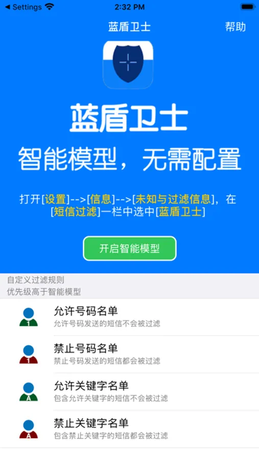 蓝盾卫士-智能短信过滤&骚扰信息拦截