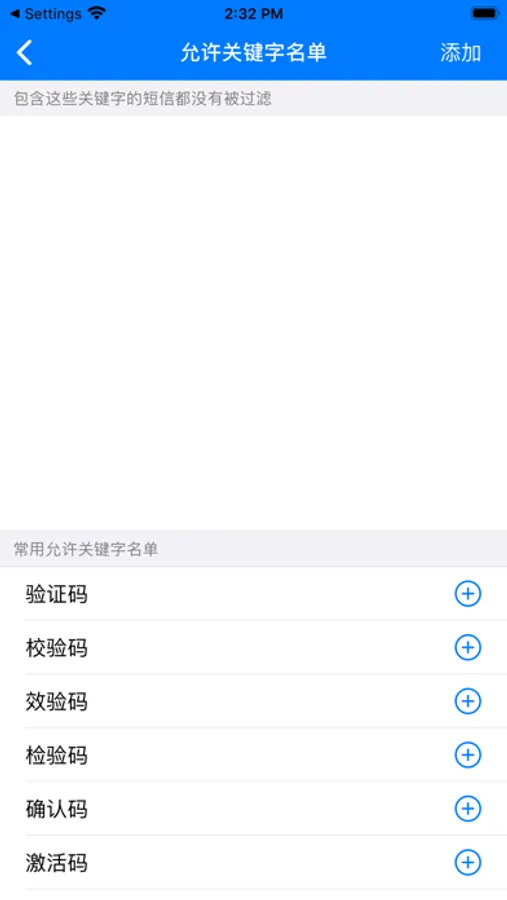 APP智能模型使用几十万短信样本训练并且采用Core ML机器学习框架,所以能快速精准识别垃圾短信。APP短信过滤智能模型使用简单,不需要任何配置,开启即用。智能模型本地过滤短信,没有任何网络操作,完全保护个人隐私。为了很好的适应用户需求,APP还提供了允许号码、禁止号码、允许关键字、禁止关键字的自定义过滤规则的设置功能。