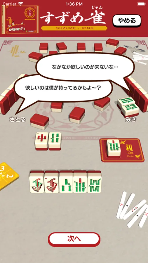 このアプリでは、あなたはこの『すずめ雀』を遊ぶプレイヤーの1人として、ゲームプレイのハイライトシーンにおいて、簡単な選択を行なうことで、うまく「あがり」に導けるかどうかに挑戦していただきます。"