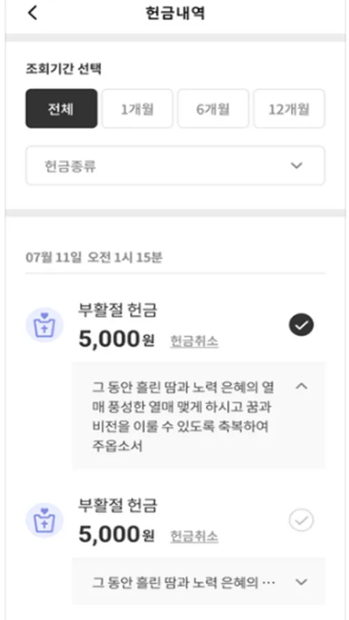 - 언제나 나의 헌금내역과 기도제목을 조회할 수 있어 신앙생활을 되돌아 볼 수 있어요