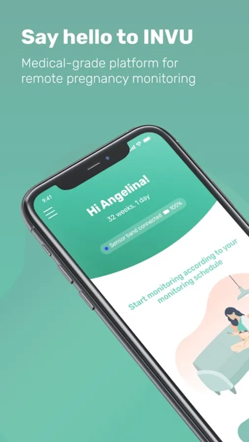 From the comfort of your home, office, or wherever, use the FDA-cleared INVU Sensor Band™, integrated blood pressure cuff and INVU™ app to track your baby’s heart rate and your heart rate. Through the app, you can view insights into your baby’s well-being, monitor kicks, and hear the heartbeat. After each session, a clinician will review your health data.