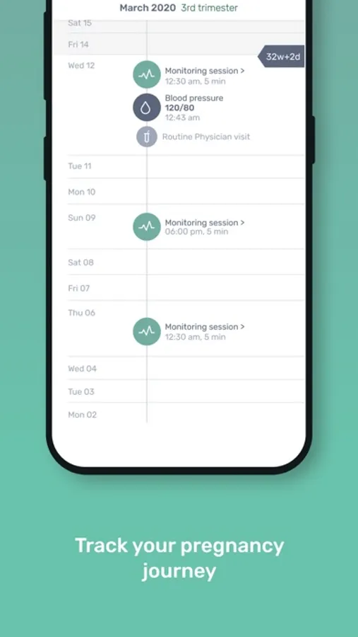 Use the INVU™ app interactive timeline to review your session history and pregnancy health trends.
